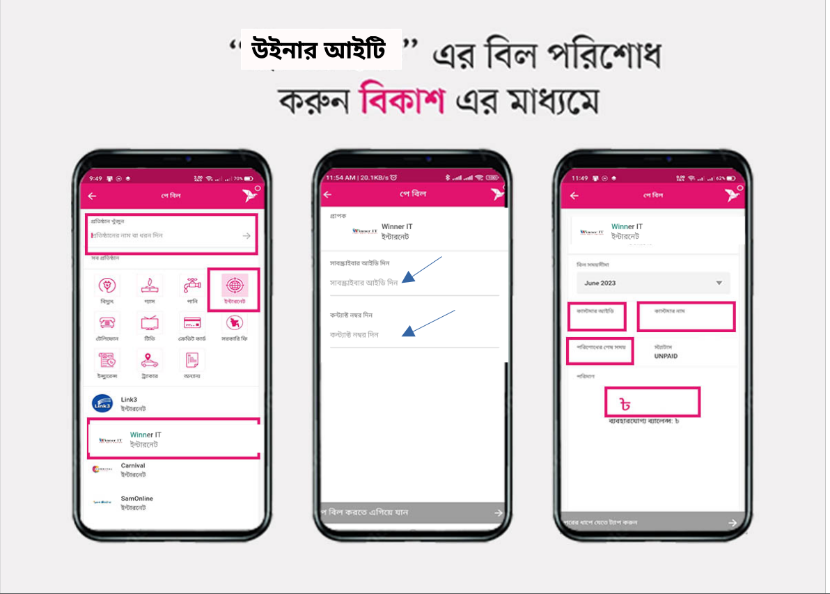 In "পে বিল" option you'll find "Winner It". Simply tap on it and follow the next step.